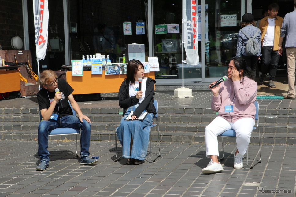 参加者に富士トリコローレの魅力を聞くと、異口同音に富士山を前にした芝生広場というシチュエーションが大きいという。この素晴らしいロケーションの会場に自分たちのクルマを展示できることがポイントだ。さらに自動車ジャーナリストの嶋田智之さんとチンクエチェント博物館館長の深津浩之さん、そして同館アンバサダーの山本衿奈さんの普段聞けないオフレコのトークショーなども大きな魅力となっているようだ。