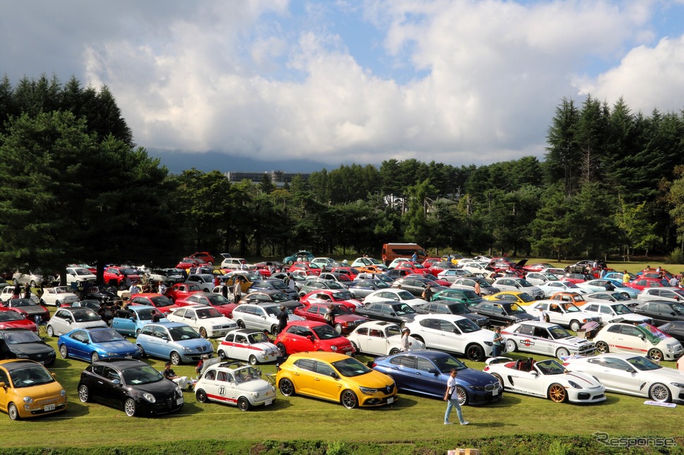 これまでと同じ人材開発センター 富士研修所(旧・富士カーム、山梨県富士吉田市)にイタリア車を中心とした欧州車が約400台集合。古くは1947年のフィアット『トッポリーノA』から最新のアルファロメオ『ジュニア』まで、まさに新旧取り混ぜた状況だ。