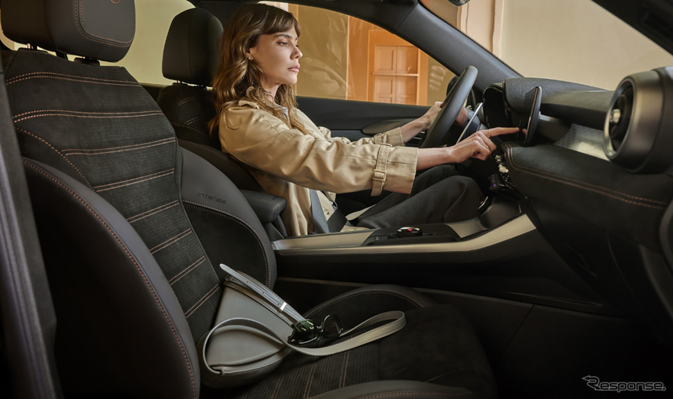 内装では、タンカラー(淡い茶色)のステッチをあしらったブラックアルカンターラシートを装備し、センターアームレストには「INTENSA」ロゴが刻まれている。さらに、スポーツレザーステアリングにもタンカラーアクセントが施され、細部に至るまでクラフトマンシップが息づいている。