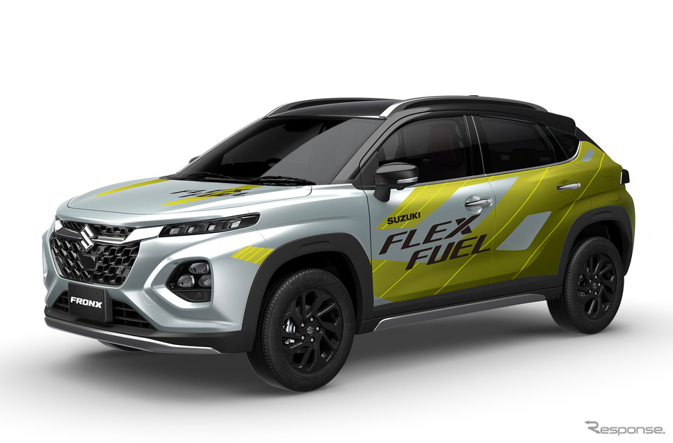 また、四輪技術展示として、コンパクトSUV『フロンクス』をベースにエタノール燃料(自然由来のバイオ燃料をガソリンに混合した燃料)に対応した『フロンクスFFVコンセプト』を展示。カーボンニュートラルに向けたスズキのマルチパスウェイの取り組みのひとつとして紹介する。スズキは、顧客それぞれの地域にあったカーボンニュートラル実現の選択肢を広げていくことを目指す、としている。