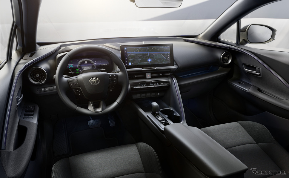 Mid+グレードでは、18インチマットブラック加工アルミホイールを新たに採用し、ブラックセンターオーナメントが特徴的だ。フロントとリアシートには新しいサマラファブリックを導入し、リサイクル素材の使用比率を向上させた。グレーの背景に微細な混合色のヒントを持つサマラファブリックは、ダークグレーとブラックのファブリックと組み合わされ、フロントシートのグレーステッチとガンメタルのギアシフトノブ装飾が上質な室内空間を演出する。