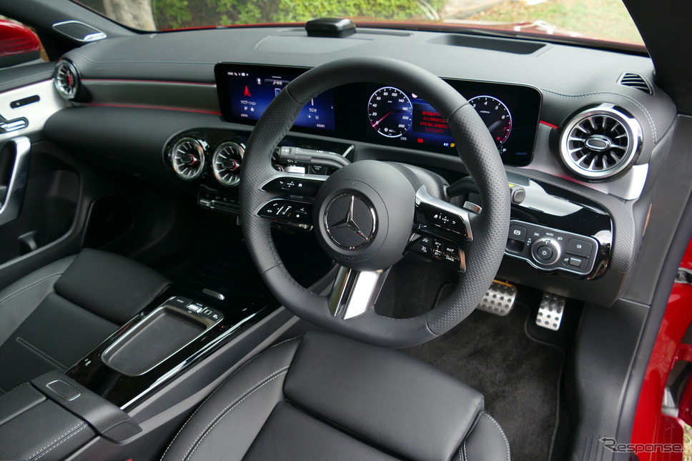 前後して試乗した「A 200 d Urban Stars」とはホイールベースは共通、車重も試乗車同士で数値上奇しくも1510kgと同一だったが、乗り味はこちらのCLAは、よりゆったりとした振るまいに感じられた。