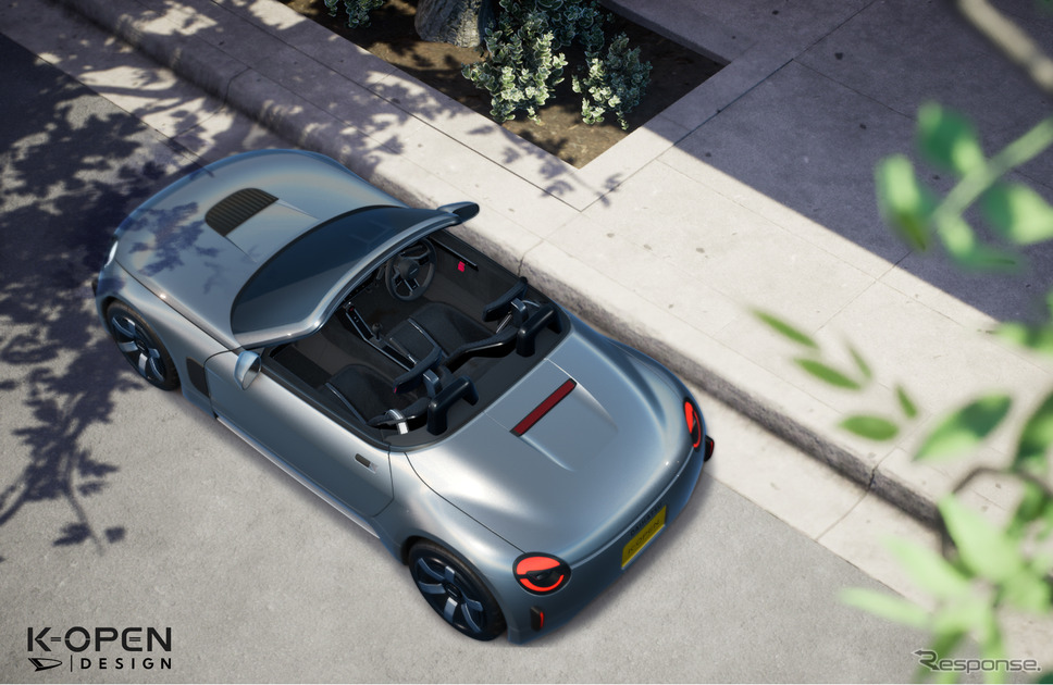 K-OPENの特徴として、コペンらしい親しみやすさとFRの走りを感じさせる力強さを両立させたスタイリングを採用。軽快にオープンエアで風を感じる気持ちの良い走りと、より楽しい走行性能をもたらすFRレイアウトを実現している。