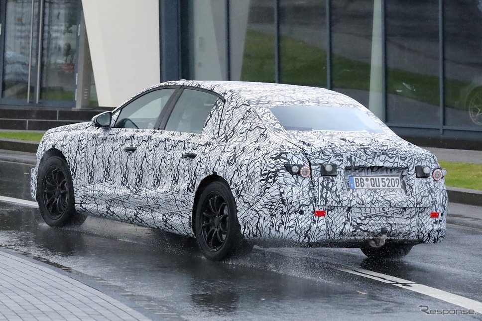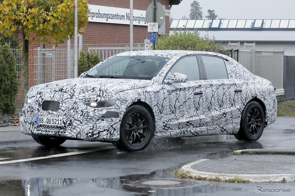 撮影されたプロトタイプは厳重にカモフラージュされ、同じく開発中の『CクラスEQ』に類似しているが、CクラスEQは2026年第2四半期に生産開始予定で、EクラスEQの登場はそれからだ。プロトタイプをよく見ると、従来タイプのドアハンドルやAピラー基部に配置されたサイドミラーなど、様々な変更点が確認できる。EクラスEQでは全長が長く、ベルトラインもフラットになっているようだ。