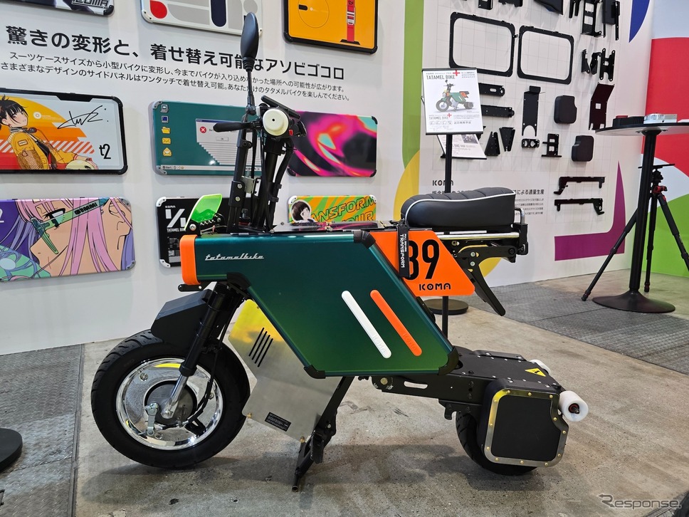 タタメルバイクの進化版「タタメルバイクプラス」も披露。元ヤマハのデザイナーによるカスタムデザインで、グリップやフロントガード、新デザインパネルを装着。基本構造は同じながら、より本格的なバイクらしい外観を実現した。今後、様々なスペシャルエディションやアクセサリーパネルの展開を予定している。